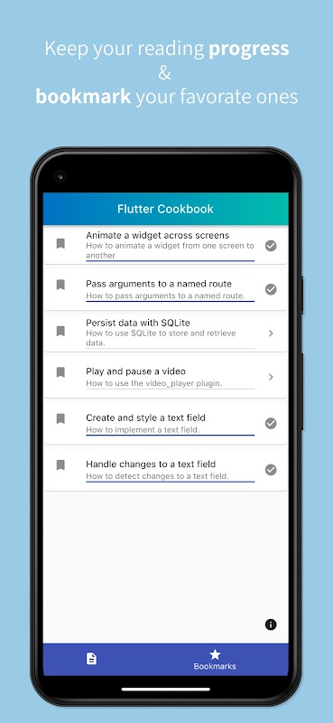 - docs.flutter.dev/cookbook의 60개 이상의 공식 레시피.