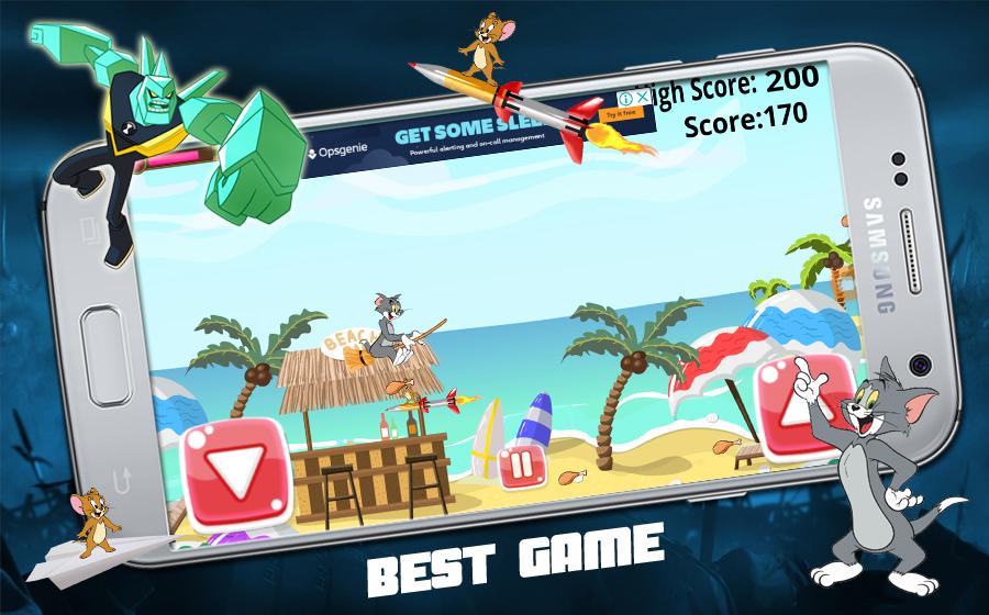 Tom fly on bloom-stick and travel through the beach and cities around the world the enemy of tom is Jerry which is used as hurdles of tom with attractive graphics and interested adventure and parallel background like reality.