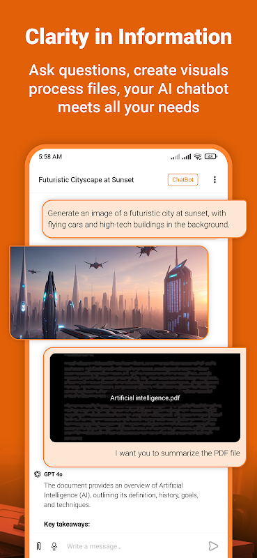 AI 기반 채팅에 참여하여 아이디어를 생성하고, 연구를 수행하고, 문제를 해결하세요. 사진, PDF, 오디오 또는 비디오를 업로드하여 AI로부터 자세한 요약과 통찰력을 얻고 의사 결정 프로세스를 단순화하세요.