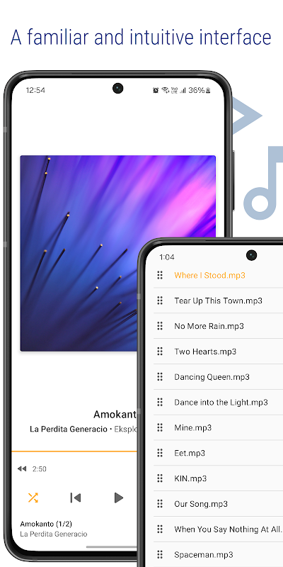 • 노래와 폴더를 길게 눌러 재생 목록을 쉽게 만들고 관리