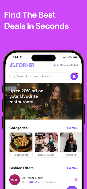 For Her를 통해 레스토랑과 카페에서 독점 혜택을 즐겨보세요. 쉽게 할인을 받고 절감액을 추적하세요. 저장된 현금이 필요하지 않습니다!