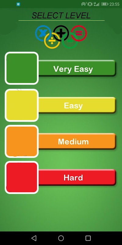 이 게임 수학 2020에는 4 레벨이 있습니다 (매우 쉽고, 쉽고, 중간이며 어렵습니다)