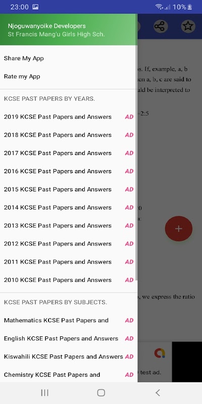 The App features all Mathematics Topics featured in 8.4.4 Form 1 Syllabus