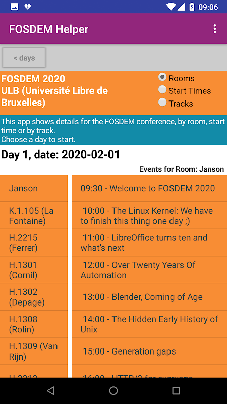 FOSDEM 도우미. 이번에는 App Inventor로 만든 FOSDEM의 일정 앱입니다.
