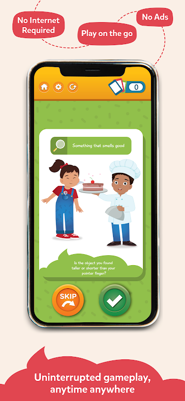 이 앱에는 At Home, On the Go, At the Beach 등 8개 이상의 고유한 위치 기반 테마가 포함되어 있습니다. 부모와 함께 플레이하든, 서로 대항하여 플레이하든, 아이들이 기술을 습득하고 일반 지식을 확장할 수 있는 완벽한 방법입니다.