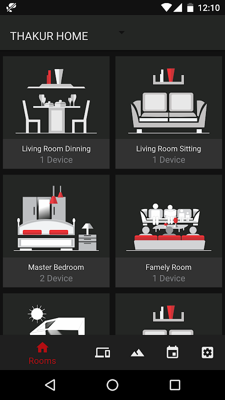 조명, AC, TV 및 미디어 제어를 제어하는 홈 자동화 응용 프로그램.