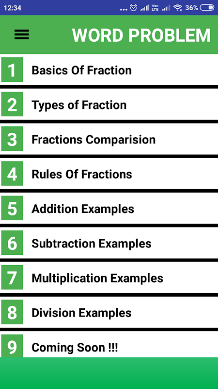 이 응용 프로그램은 분수에 대한 기본 지식을 제공합니다 ..