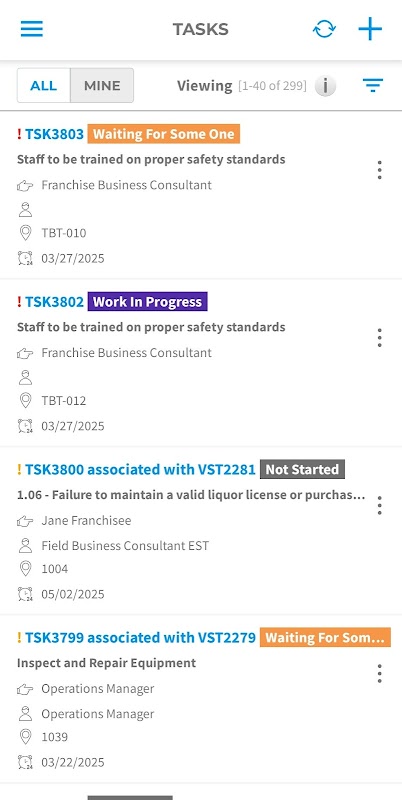 FranConnect Field Ops 앱을 사용하여 다음을 수행할 수 있습니다.