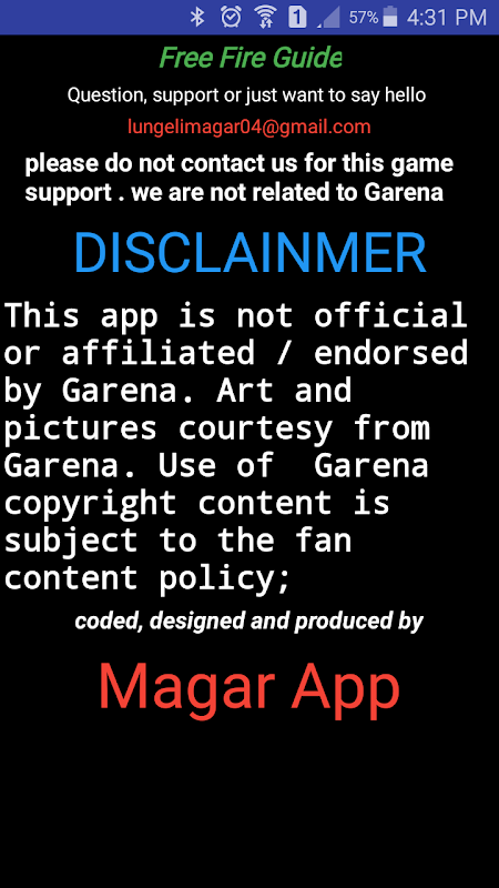 - this app is not offical app of garena .. only a unofficial guide app of free fire game