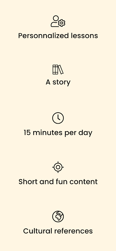 개인별 프랑스어 학습내용: Frantastique 수업은 고객의 필요, 요구, 수준을 기준으로 학습합니다. 전문적인 시나리오, 다양한 악센트, 연습, 풍부한 유머를 내용으로 담고 있습니다. 매일 10분에서 15분만 학습하세요!