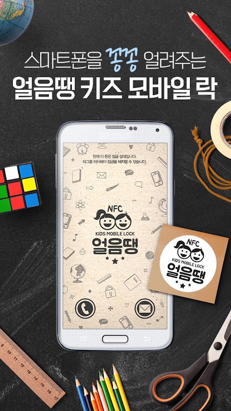 스마트폰을 꽁꽁 잠궈주는 얼음땡 시리즈는 NFC기술을 접목한 강력한 잠금 기능을 가진 어플입니다. 얼음땡으로 우리 아이들의 바른 스마트폰 사용습관을 길러주세요.