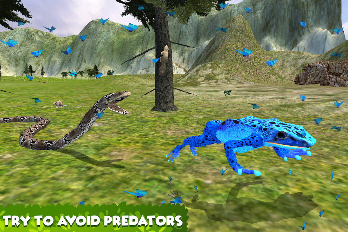 Customize your frog to look like poison dart frog, ornate horned frog, northern leopard frog, tree frog or other with Frog Survival Simulator! Discover this colorful world of frogs, hunt dragonflies, butterflies and other tasty insects, battle against cruel predators and do your best to survive! Mate with other frogs and have fun!
