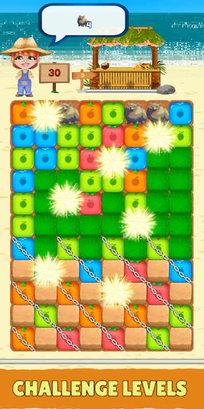 당신의 목표는 그들을 폭파하고 레벨을 해결하기 위해 같은 과일을 정렬하는 것입니다.