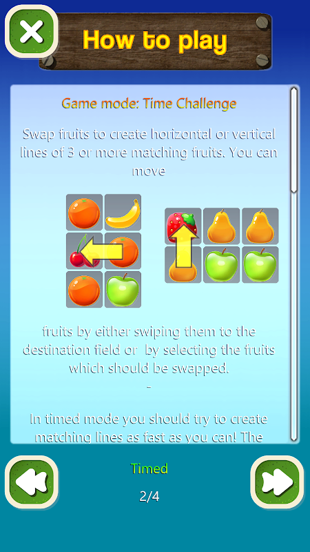 4가지 게임 모드는 매우 다양한 게임 경험과 무한한 재미를 제공합니다. 전 세계의 사람들과 경쟁하고 싶다면 FRUIT FUN에는 온라인 순위표도 포함되어 있습니다. FRUIT FUN을 시도하면 실망하지 않을 것입니다! 하지만 주의하세요: 이 게임은 매우 중독성이 있습니다!