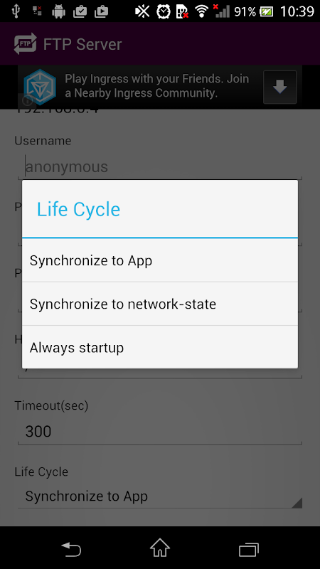 This app is a simple FTP server for Android.