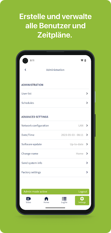 또한 SmartConnect 도어를 사용하면 인터넷, Bluetooth 또는 라디오 키를 통해 스마트폰을 사용하여 외부에서 건물에 편리하게 액세스할 수 있습니다. 추가 액세스 제어를 별도로 설치할 필요가 없습니다. 개별 액세스 프로필을 생성하고 스마트폰을 통해 공유할 수도 있습니다. 임시 임차인이나 장인과 같은 임시 사용자에게도 적합합니다.