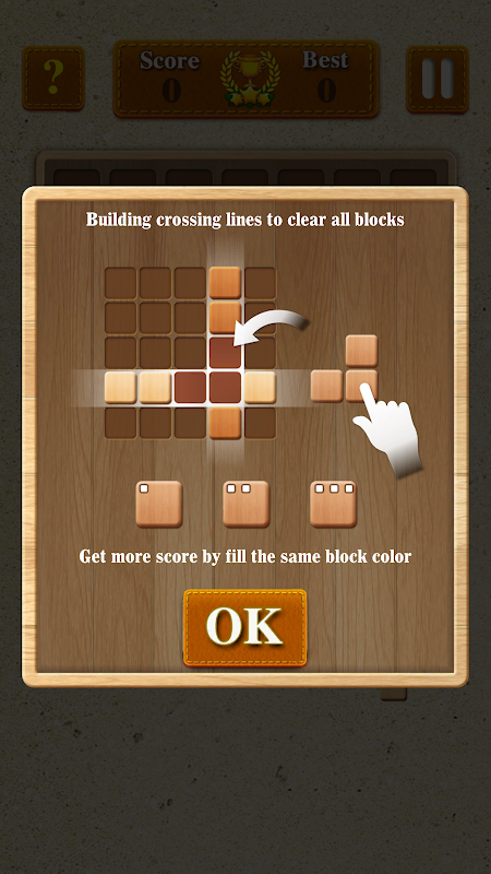 - Place the pieces into board. Fill in a vertical or horizontal line.