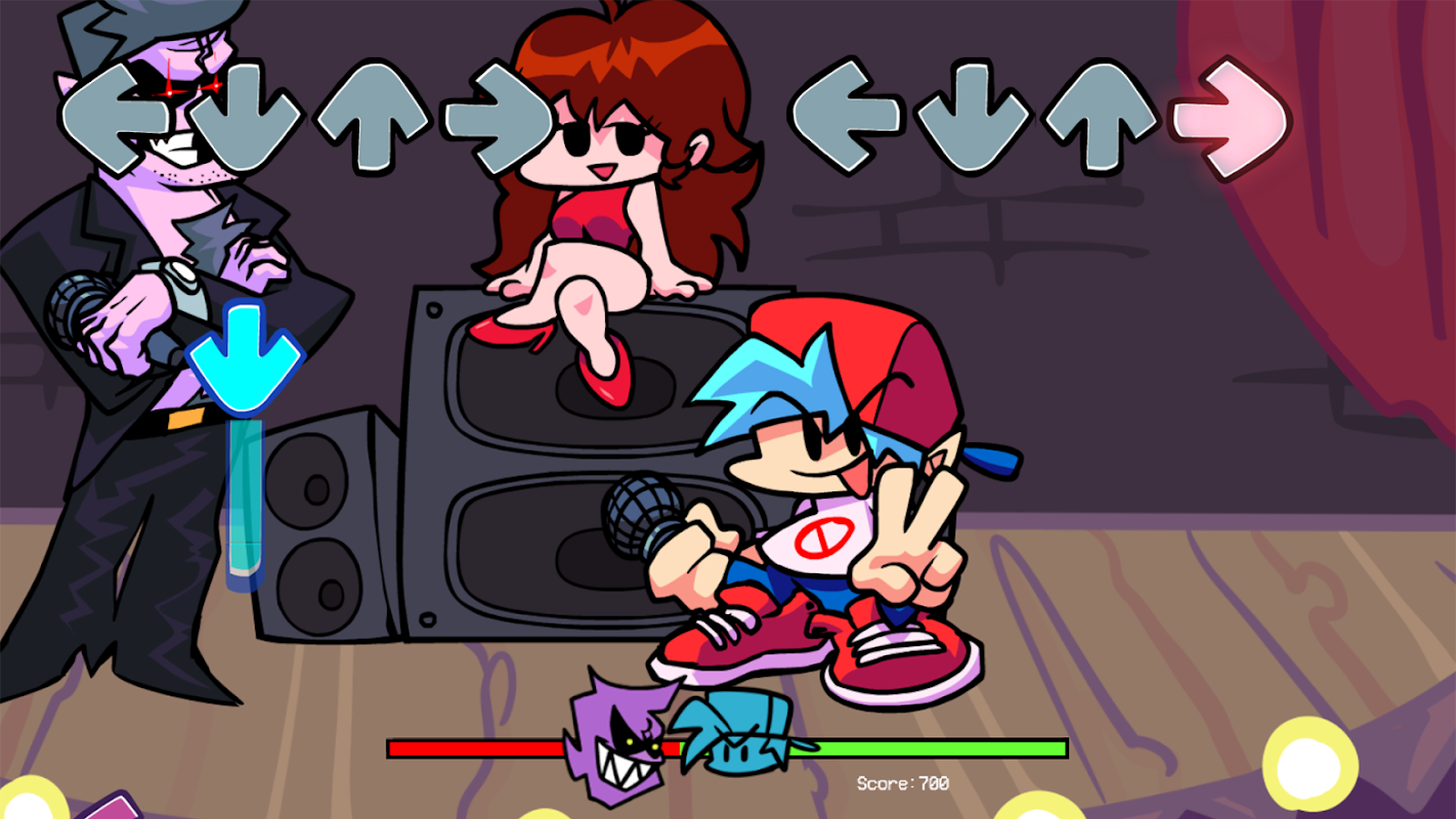 파란 머리 보이프렌드로 플레이하고 다양한 적들과 랩 배틀을 하여 여자친구 앞에서 자신의 가치를 증명하세요.