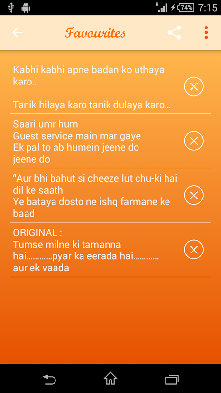 좋아하는 shayari을 추가, 즐겨 찾기 목록을 ◆.