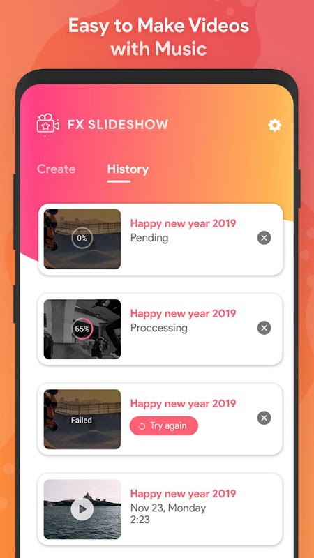 FX Slideshow is the best photo video maker to merge photos to create slideshow with music. With FX Slideshow, you can mix photos to videos with music, effect, sticker. FX Slideshow help you edit and share your photo music video on Tik Tok/Youtube/Instagram/Facebook/Twitter with others.