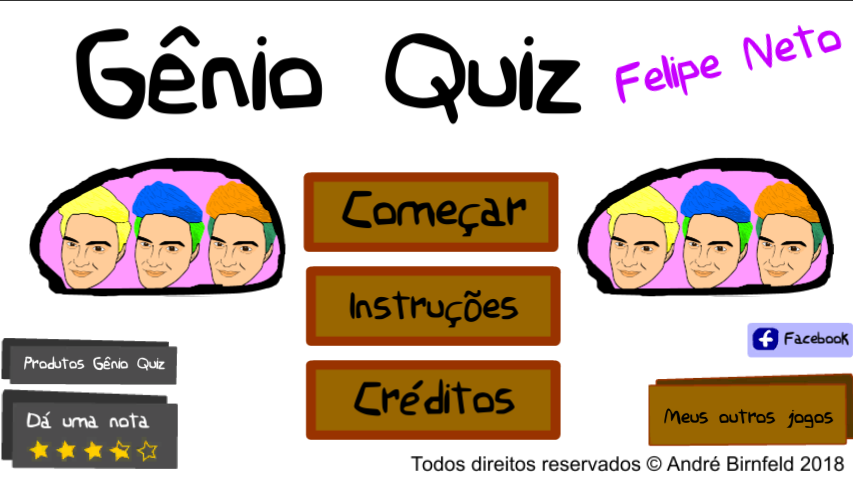 Felipe Neto에 대한 지식이 이 게임에서 승리하기에 충분한지 알아보십시오! 그러니 엄지손가락을 치켜들고 이 퀴즈에 등록하세요! 당신이 Neto Family의 가장 위대한 천재임을 보여주세요!