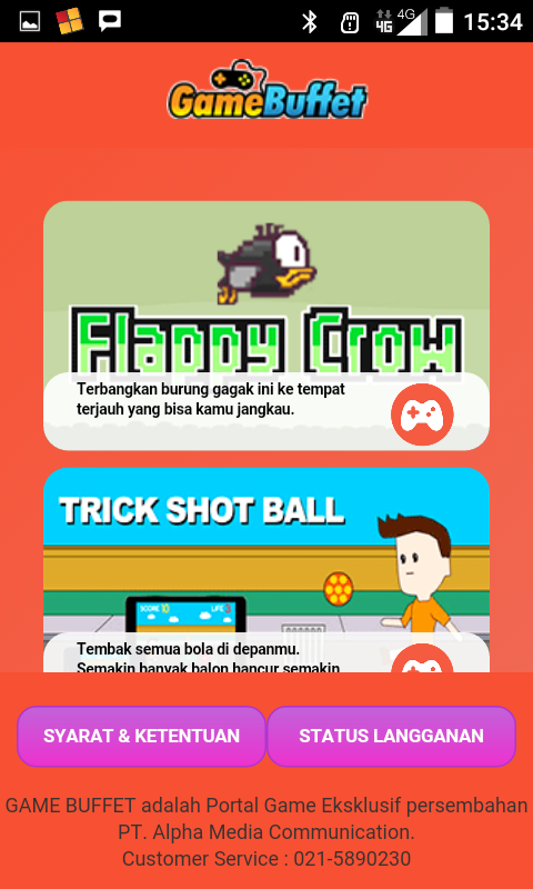 GAME BUFFET adalah portal layanan game HTML5 yang bisa dimainkan oleh pelanggan melalui browser tanpa perlu melakukan instalasi gamenya. Pelanggan bisa memainkan puluhan games hanya dengan sekali langganan.