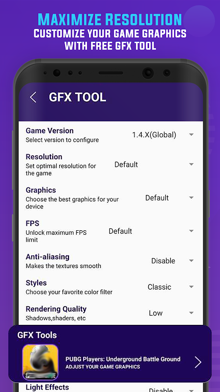무료 GFX 도구가 포함된 이 놀라운 게임 최대화로 게임 경험을 향상시키십시오.