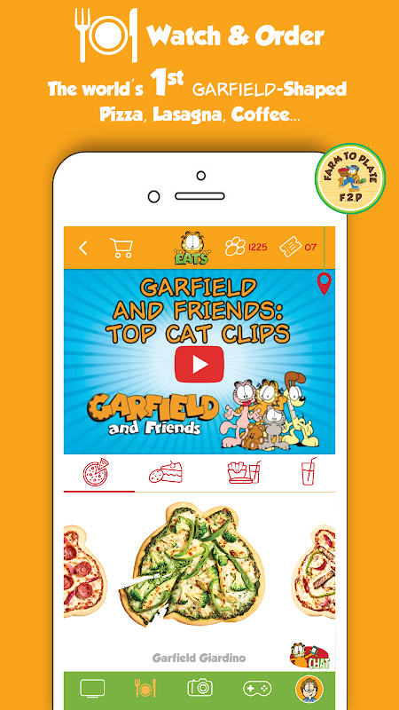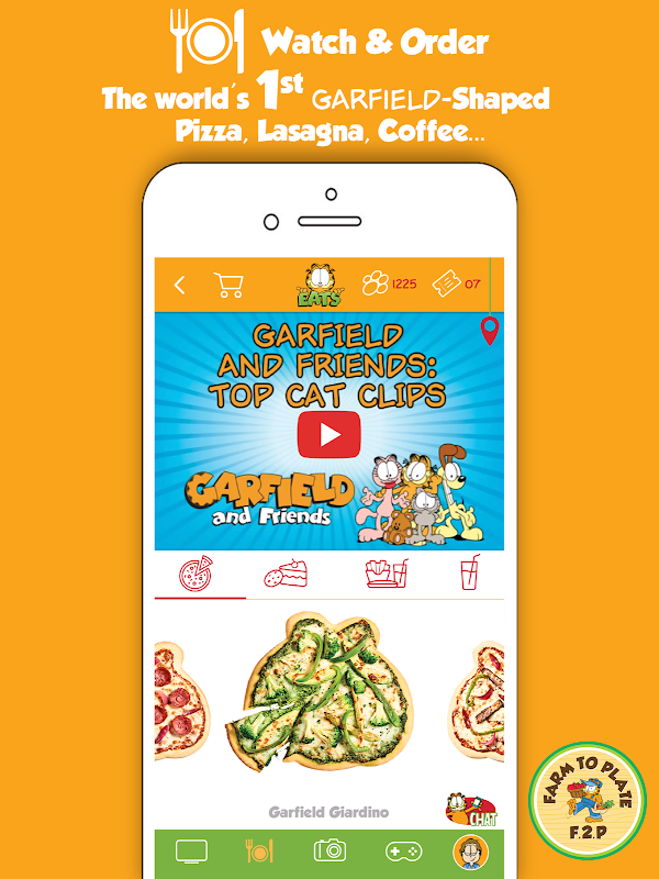 * Order: your super tasty & healthy Garfield-shaped pizza, lasagna, Garficcino coffee, Garfield smoothies or Garfield cookies from our exclusive Farm 2 Plate menu. 100% natural and no GMOs.