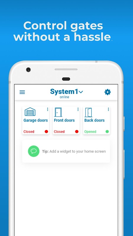 -당신은 작동하고 게이트의 라이브 상태를 볼 수있는 전화 화면에 위젯을 드래그 앤 드롭 할 수 있습니다.