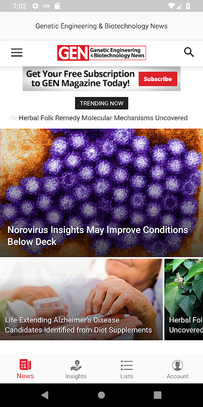 Introducing the new GEN app for Android. If you do research and development or have interest in life sciences, you need this free app. Keep up with all the latest news, insights, technological advancements, new products, and discoveries. We cover the entire bioproduct life cycle from early stage R&D to applied research including OMICs and biomarkers, as well as diagnostics, to bioprocessing and commercialization.