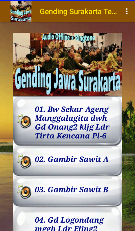 노래와 음악 Gending Jawa Surakarta의 전체 컬렉션입니다. 오프라인 + 벨소리.