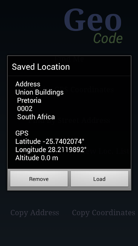 This is a simple app to find street address from GPS coordinates and vice versa. It uses Google Maps images and information to function.