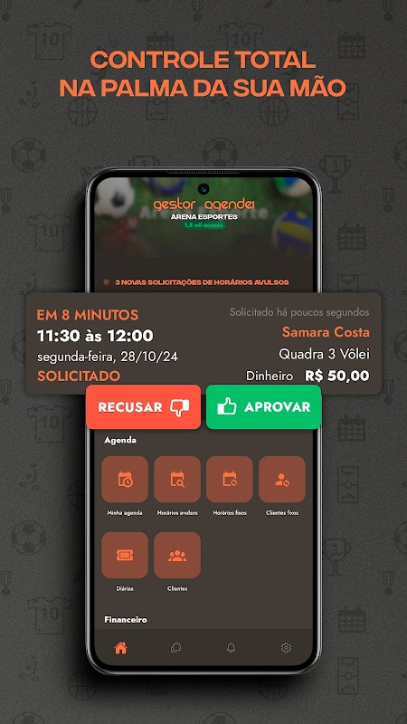 Gestor Agendei Quadras 앱을 사용하면 다음을 수행할 수 있습니다.