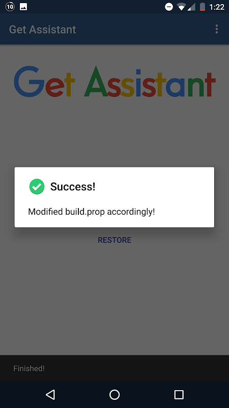 We also save a backup of your model name on first startup so we can always revert back to normal Google Now on Tap, or Google Screen Search. In addition to that, it makes backup of build.prop in '/system/first-time-open-backup-build.prop.bac' in case of emergency restore.