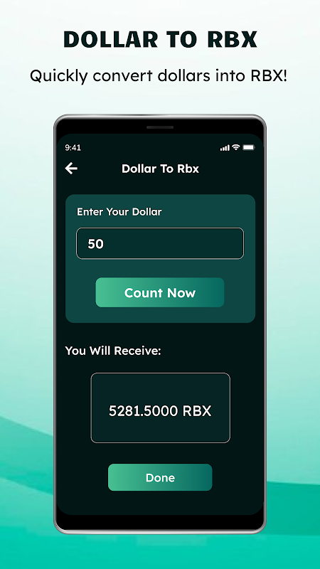 이 앱은 무료 RBX 계산기와 함께 엔터테인먼트를 제공합니다. 일일 무료 Robox 가치를 추적하고 정확한 평가를 위해 변환하는 데 도움이 됩니다.