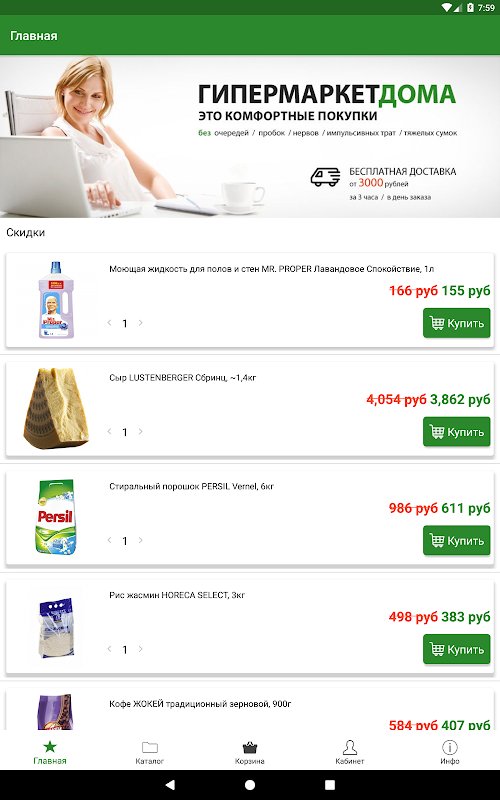 Доставка продуктов, товаров для дома, бытовой химии, зоотовары. Выбирайте из ассортимента 20 000 товаров. Скидки до 50% на 2000 товаров.