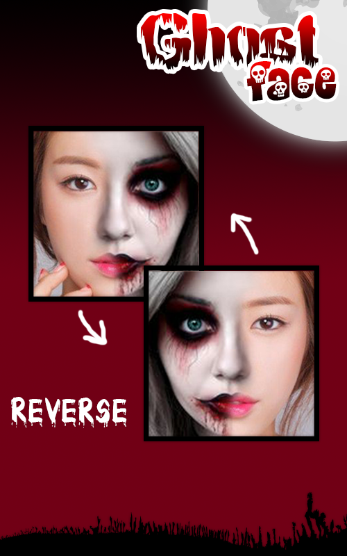 유령 얼굴 체인저는 사람들 무서운 많은 재미 유령 효과를 가지고 있으며, 재미 유령의 경험을합니다. 그냥 쉽게 전화 갤러리에서 모든 이미지를 선택하거나 카메라에서 그림을 한 후 우리의 무서운 얼굴 체인저에 의해 치명적인 찾고 끔찍한 좀비로 사람이 간단한 일반 찾고 이미지를 변환 할 수 있습니다.