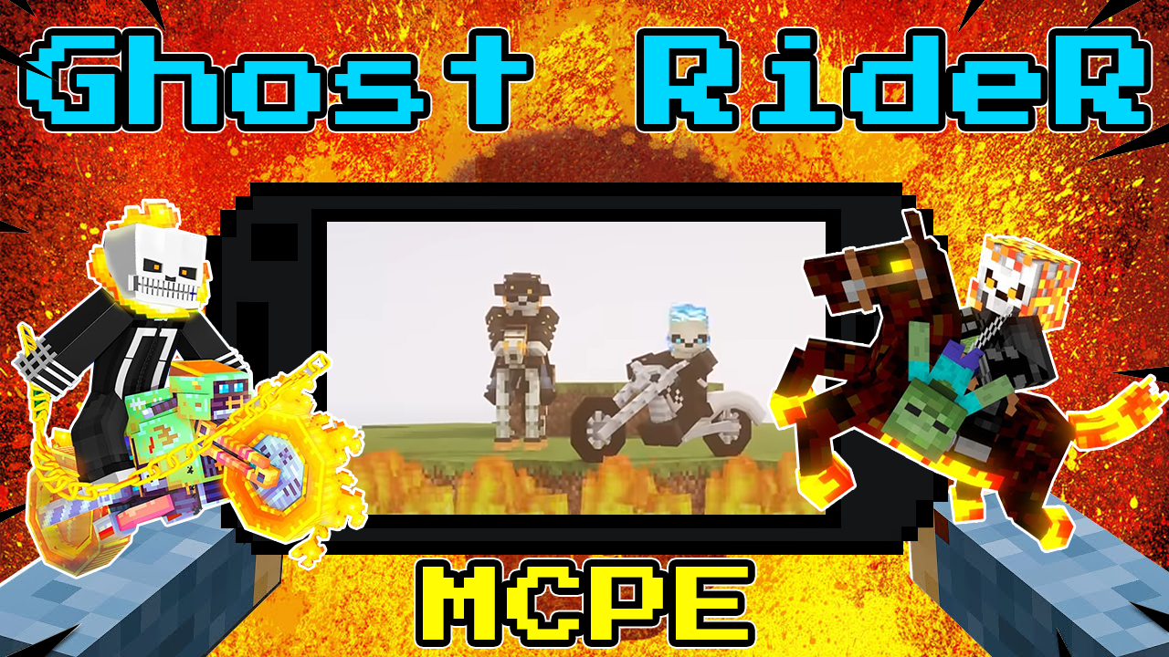 This is not a game, but an addition to the game Minecraft pocket edition that will appeal to all fans of the ghost rider because the collection of addons will add a fire mob ghost rider, as well as a hellish horse and a hellish motorcycle for moving around the biomes of your favorite game. Get ready to have fun with friends on online servers, because add-ons can be used in survival mode. You can craft a motorcycle and summon a horse from a summon egg; in the pixel world you can explore the darkest locations.
