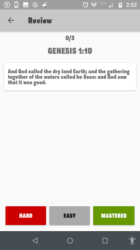 You can review Bible verses either manually by selecting responses, or you could do it through speech which automatically recognizes how accurate your recitation of the verse is with the actual verse.