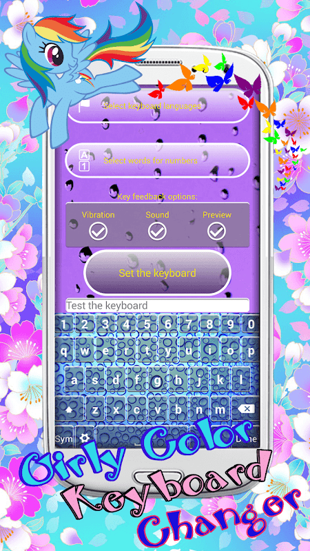 ✦✿Girly Color Keyboard Changer✿ offers you numerous beautiful themes, specially designed for girly girls. Choose the desired background theme and one of many girly wallpapers to enhance your touch keyboard. Change keyboard cover in a second and beautify it with dynamic layouts, glitter stickers and cute girls images. Make your own keyboard skin by using colorful background images and stylish designs. For more fabulous look add some special effects to your best ‘‘keyboard design’’.