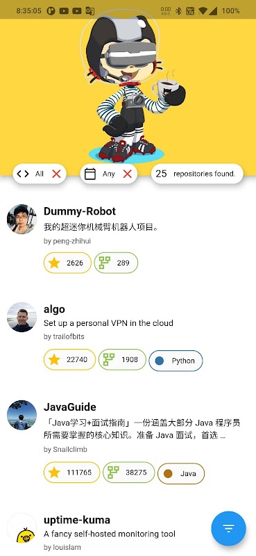 1] 모든 트렌드 GitHub 저장소가 나열됩니다.