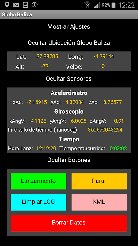 - Se recomienda utilizar otros sistemas alternativos de comunicación para realizar el seguimiento de la trayectoria del globo además del que ofrece esta aplicación. Las condiciones extremas a las que son sometidos los dispositivos electrónicos al entrar en la tropopausa (sobre todo durante el descenso) pueden provocar fallos de funcionamiento que afecten a la comunicación y que podrían imposibilitar la recuperación de la carga útil.