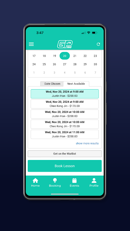 학생들은 연중무휴로 골프 레슨과 이벤트를 원활하게 예약할 수 있습니다.