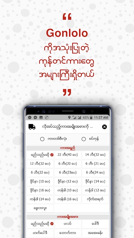 Gonlolo - ကုန္ပို႔ ကားရွာ online မွာ