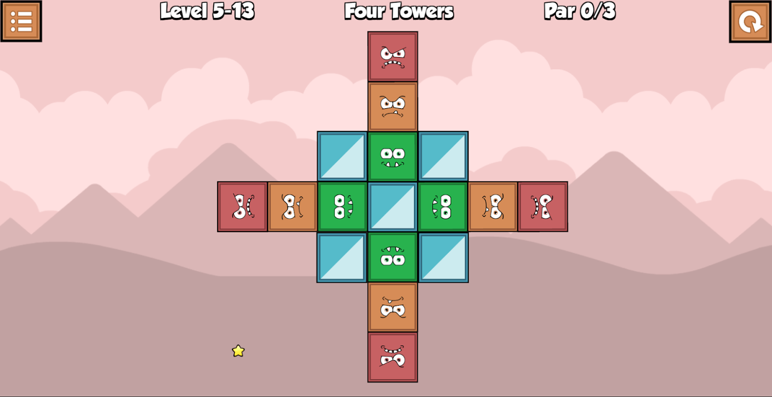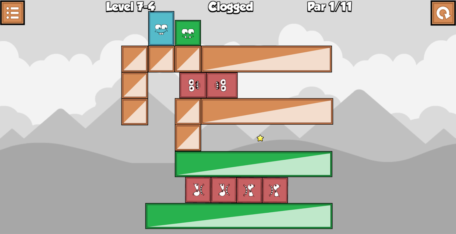 이 물리학 기반의 퍼즐 게임에서 빨간색과 오렌지 모양의 세계를 없애.