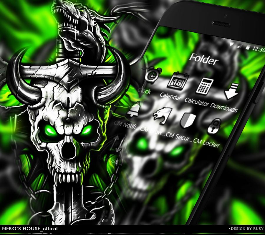 ⭐⭐⭐Green Gothic Metal Graffiti Skull Theme is a CM launcher cool theme with 3D technology for Android mobile phone.