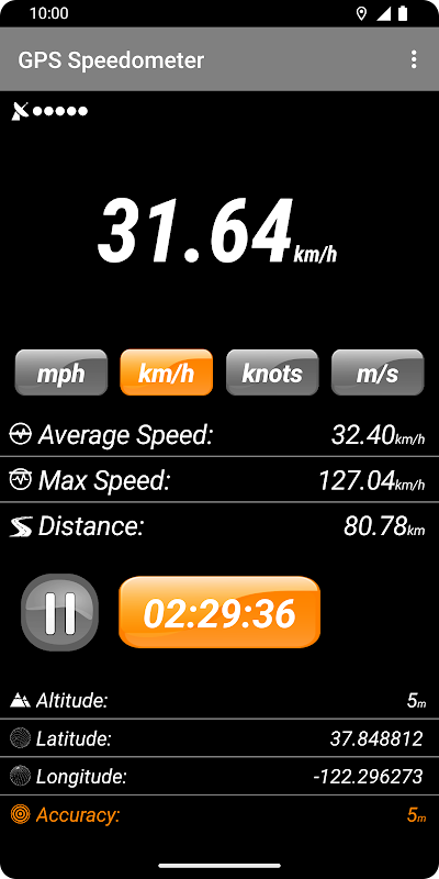 이 GPS 속도계는 기기에 내장된 GPS를 사용하여 "현재 속도", "평균 속도", "최대 속도", "걸린 거리", "고도", "위도" 및 "경도"를 표시하는 고급 앱입니다. 여행의 "타이머" 기능을 시작, 중지 및 재설정합니다.