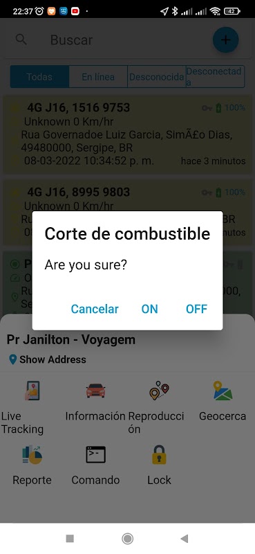 기본 앱은 무료 Gpstracking 데모 서비스를 사용하도록 설정되어 있습니다. 장치를 관리하려면 https://gpstracking.ar/에서 사용자 등록이 필요합니다.