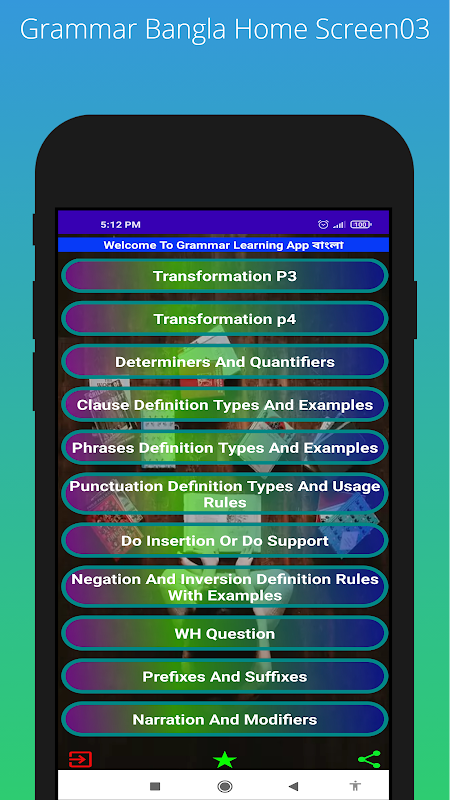 Grammar Bangla গ্রামার ইংলিশ গ্রামার বাংলা মোবাইল অ্যাপ আপনাকে সহজে ইংলিশ গ্রামার শিখতে সাহায্য করবে | Grammar Bangla mobile app will help you to learn English grammar easily