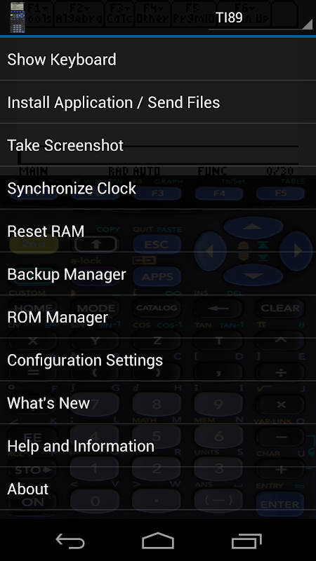 Graph89는 TI 그래프 계산기의 전체 범위를 지원하는 안드로이드 플레이 스토어에서 유일한 응용 프로그램 만들기 두 가지 강력한 에뮬레이션 엔진을 결합합니다.